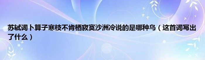 大家好,苏轼词卜算子寒枝不肯栖寂寞沙洲冷说的是哪种鸟,这首词写出了什么很多人还不知道,现在让我们一起来看看吧!