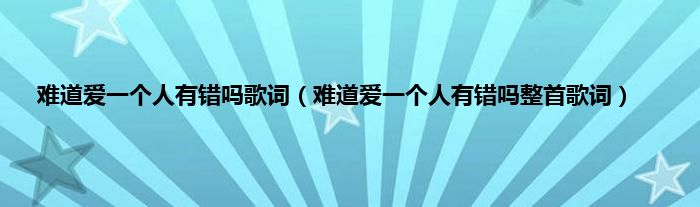 本文,难道爱一个人有错吗歌词,难道爱一个人有错吗整首歌词到此就分享完毕,希望对大家有所帮助。