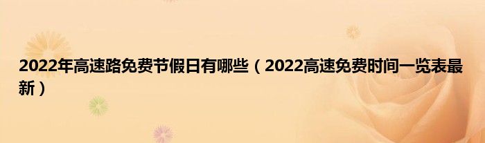 本文,2022年高速路免费节假日有哪些,2022高速免费时间一览表最新到此就分享完毕,希望对大家有所帮助。