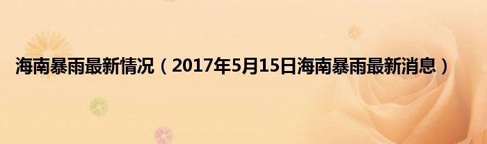 本文,海南暴雨最新情况,2017年5月15日海南暴雨最新消息到此就分享完毕,希望对大家有所帮助。