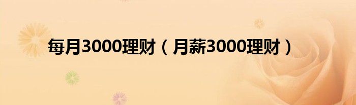 大家好,小问来为大家解答以上问题。每月3000理财,月薪3000理财这个很多人还不知道,现在让我们一起来看看吧!