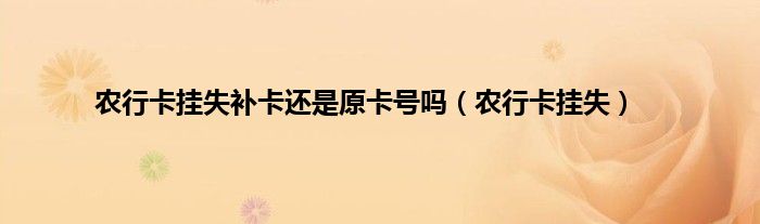 以上就是【农行卡挂失补卡还是原卡号吗,农行卡挂失】相关内容。