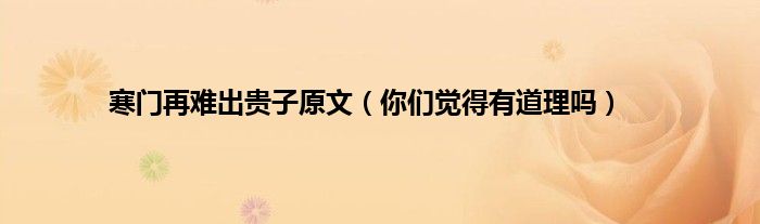 本文,寒门再难出贵子原文,你们觉得有道理吗到此就分享完毕,希望对大家有所帮助。