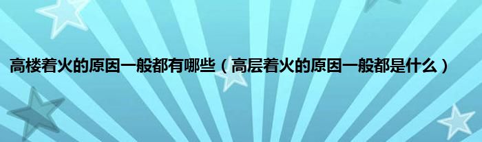 本文,高楼着火的原因一般都有哪些,高层着火的原因一般都是什么到此就分享完毕,希望对大家有所帮助。