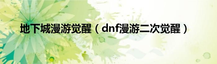 地下城漫游觉醒(dnf漫游二次觉醒)